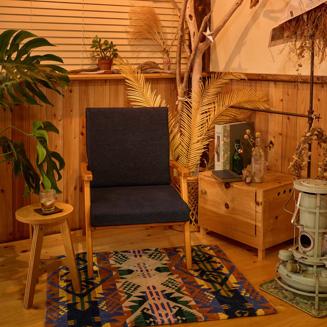 ⾼知県産ヒノキと国産デニムを使い丁寧に⼀脚⼀脚ハンドメイドで作られる。製造に関して加⼯から縫製までを⾼知県安芸市にて⼀貫して⾏っております。