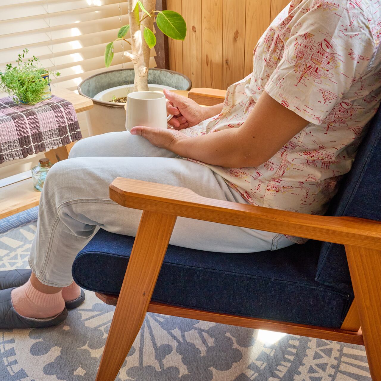 休⽇の朝のような、 ゆったりコーヒーを飲みながら⾃分なりの時間を楽しむ。そんな時間や空間を共に過ごせるお気に⼊りの⼀脚。 気取らずシンプルでありながら、こだわりが垣間⾒えるつくりはお部屋の雰囲気を豊かにしてくれます。